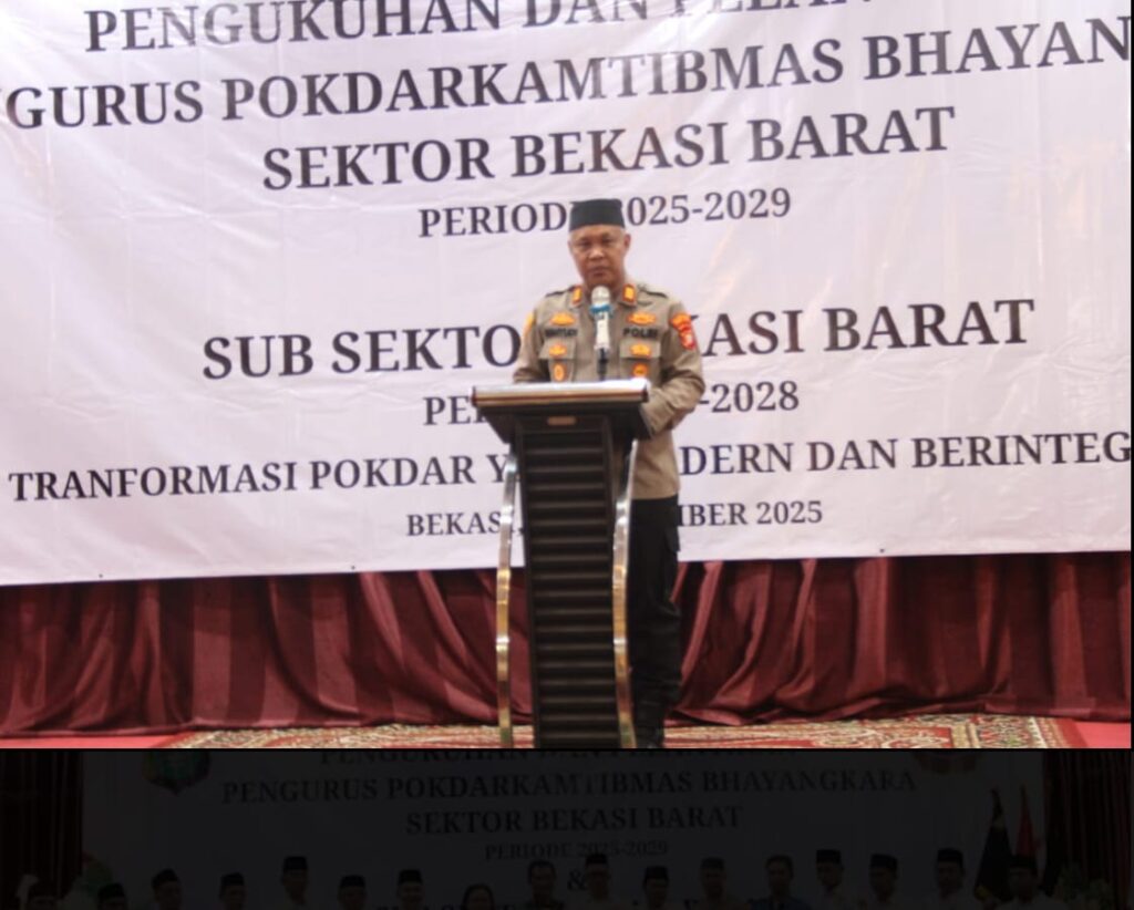 KOTA BEKASI — Kapolsek Bekasi Barat AKP Dr. H. Wahyudi, S.H., M.H., mewakili Kapolres Metro Bekasi Kota Kombes Pol. Kusumo Wahyu Bintoro, S.H., S.I.K., M.H., menghadiri prosesi pelantikan dan pengukuhan Pengurus Pokdarkamtibmas Bhayangkara Sektor Bekasi Barat masa bhakti 2025–2029 serta Sub Sektor Bekasi Barat masa bhakti 2025–2028. Kegiatan berlangsung di Aula RM Raja Sunda, Jalan Jenderal Sudirman, Kelurahan Harapan Mulya, Kecamatan Medan Satria, Kota Bekasi pada Sabtu, 15 November 2025.